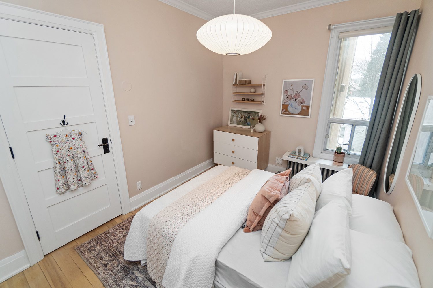 Each of the three generously sized bedrooms offers plenty of space, whether you need room for a growing family or home offices. The primary bedroom is a standout, offering an innovative and spacious built-in closet—an unexpected luxury in a home of this age.