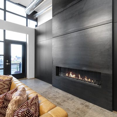 67” Linear Gas Fireplace with Custom Metal Fireplace Surround