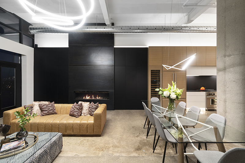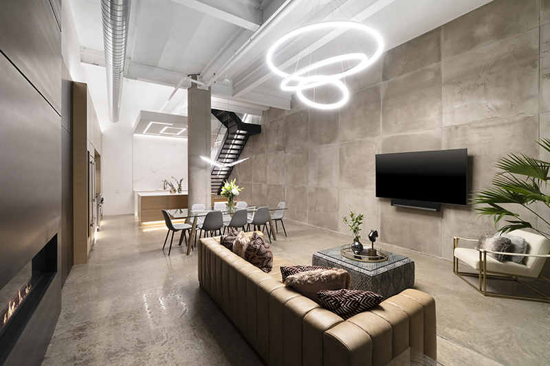 Custom kitchen with sub zero WOLF appliances, porcelain countertops, and marble backsplash. Oversized 67” custom fireplace and polished concrete floors, recessed LED lighting( not a pot light in sight!)and perfectly designed perforated stairs with built in lighting are just some of the distinct features this home offers.
